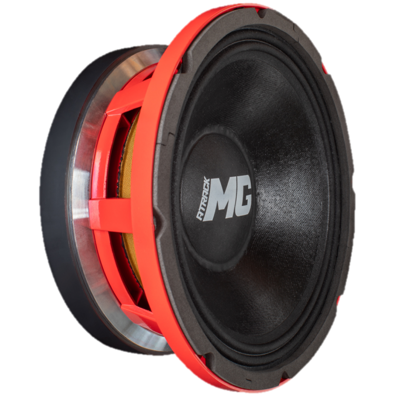 Este MG tiene: anillo corto, araña de polialgodón, cono de celulosa con fibra de vidrio, bobina de kapton con bobinado de entrada y salida de aluminio, conjunto magnético con bario y carcasa de aluminio inyectado de alta resistencia.