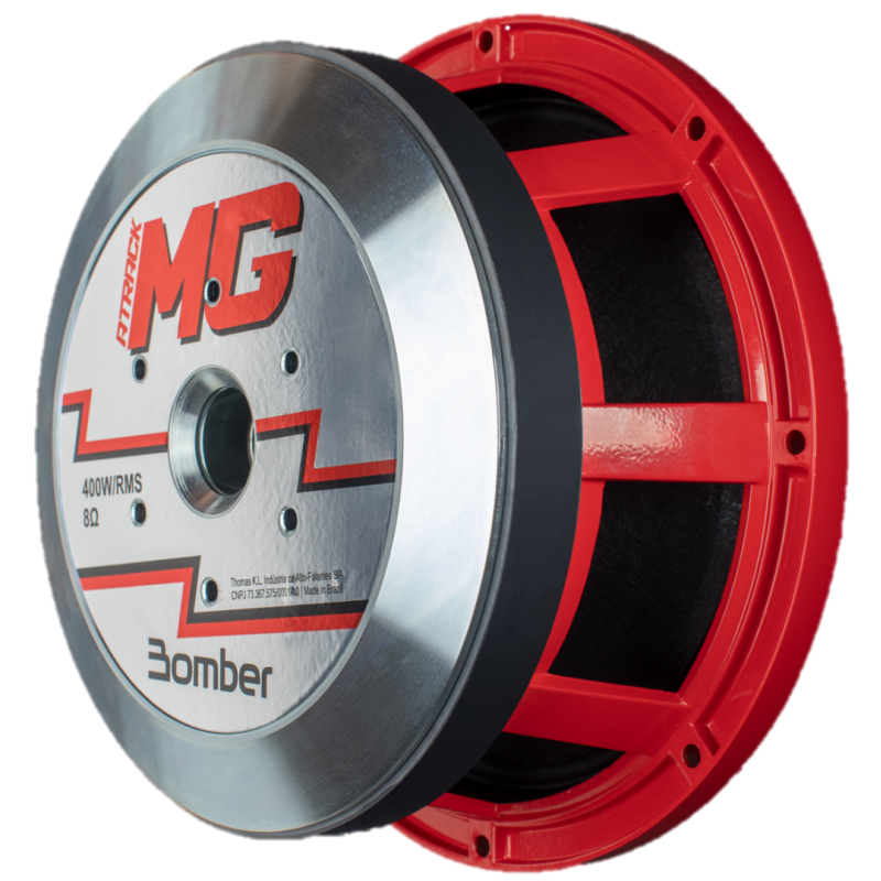 La línea Atrack TT de Bomber diseñada para Carreta Treme-Treme, la flota de estéreos para automóviles más grande del mundo. Este altavoz de medios bajos de 10" admite hasta 800 W de potencia musical.