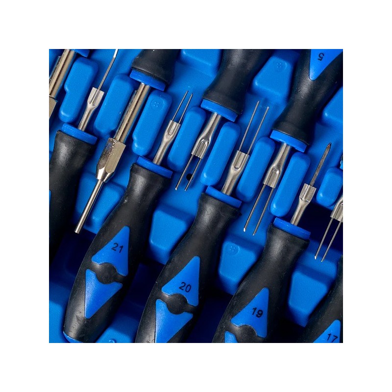 Este completo juego le garantiza tener la herramienta adecuada para manipular conectores en la mayoría de los modelos de automóviles,