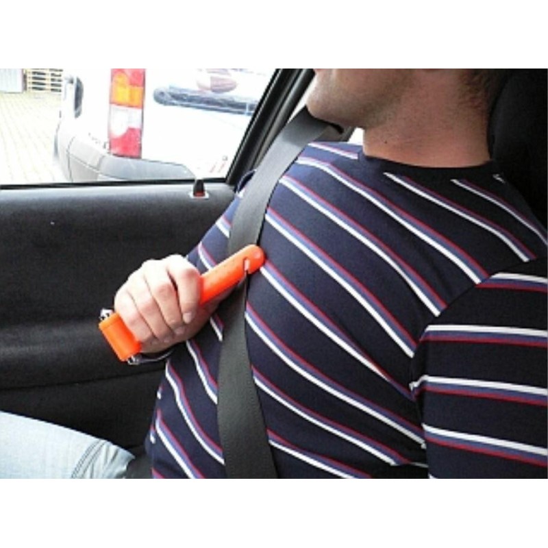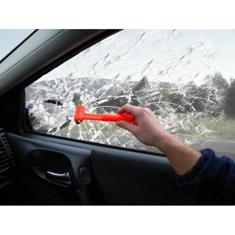La punta del martillo, especialmente diseñada, rompe fácilmente las ventanas de los vehículos, tanto por dentro como por fuera.