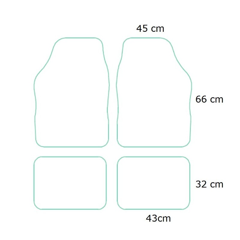 El juego incluye 4 elementos (dos alfombrillas delanteras y dos traseras) diseñados para adaptarse a la mayoría de los interiores estándar.