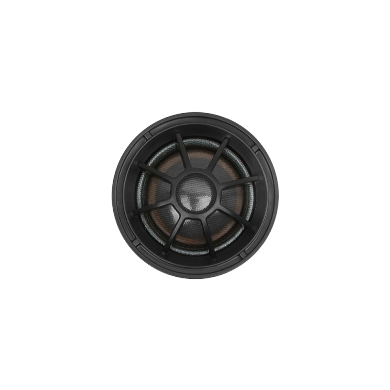 • Altavoz de rango medio preciso de 4” laminado con fibra de vidrio