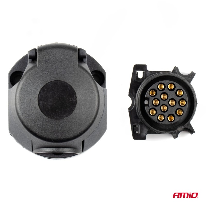 Una toma de caravana de 13 polos para instalaciones eléctricas de 12 V. Su fabricación de alta calidad garantiza un funcionamiento duradero y sin problemas, producto envasado en un estético blíster.