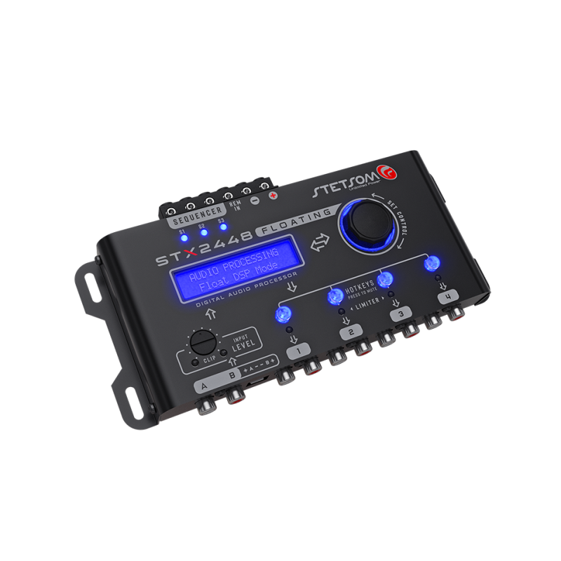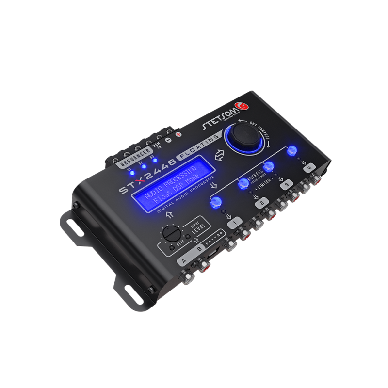El nuevo procesador flotante STX2448 trae nuevo diseño y características de última generación, pensados para mejorar y optimizar el sistema de audio de un vehículo. Actúa como un procesador de señal digital (DSP), permitiendo ajustes finos y personalizados a las características del audio reproducido a través del sistema de sonido del automóvil. Estos ajustes incluyen ecualización, cruce, retardo de tiempo y otros parámetros que influyen en la calidad del audio.