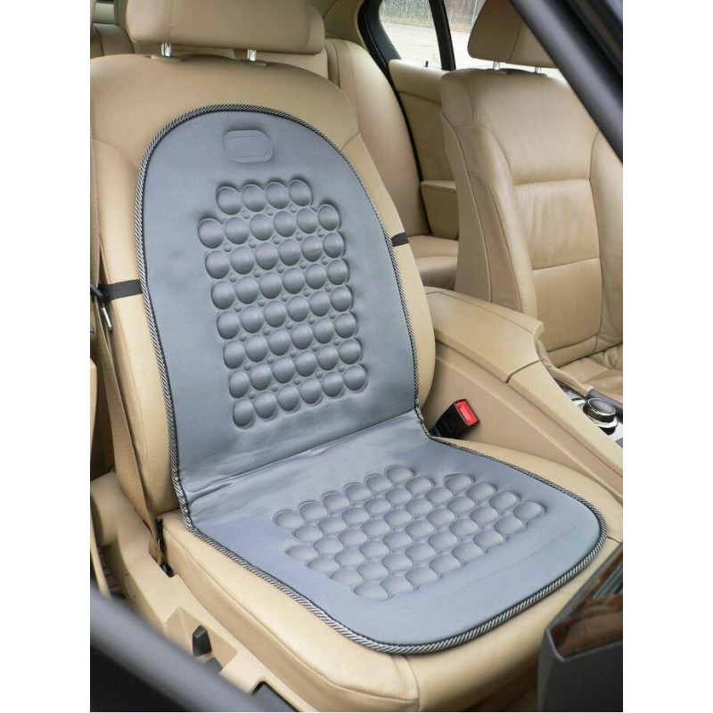 Respaldo magnético para coche fabricado con poliéster (superficie) y espuma de poliuretano (relleno).