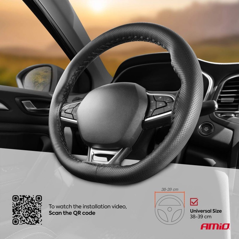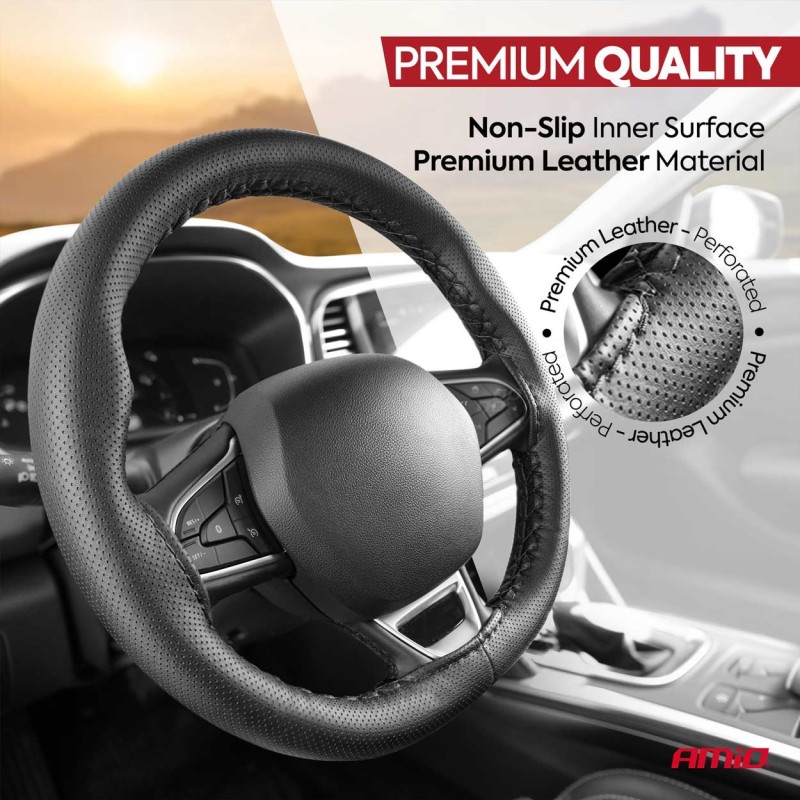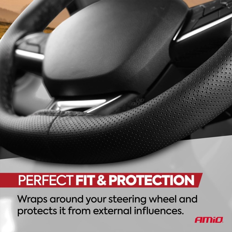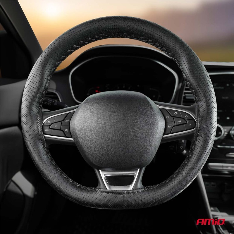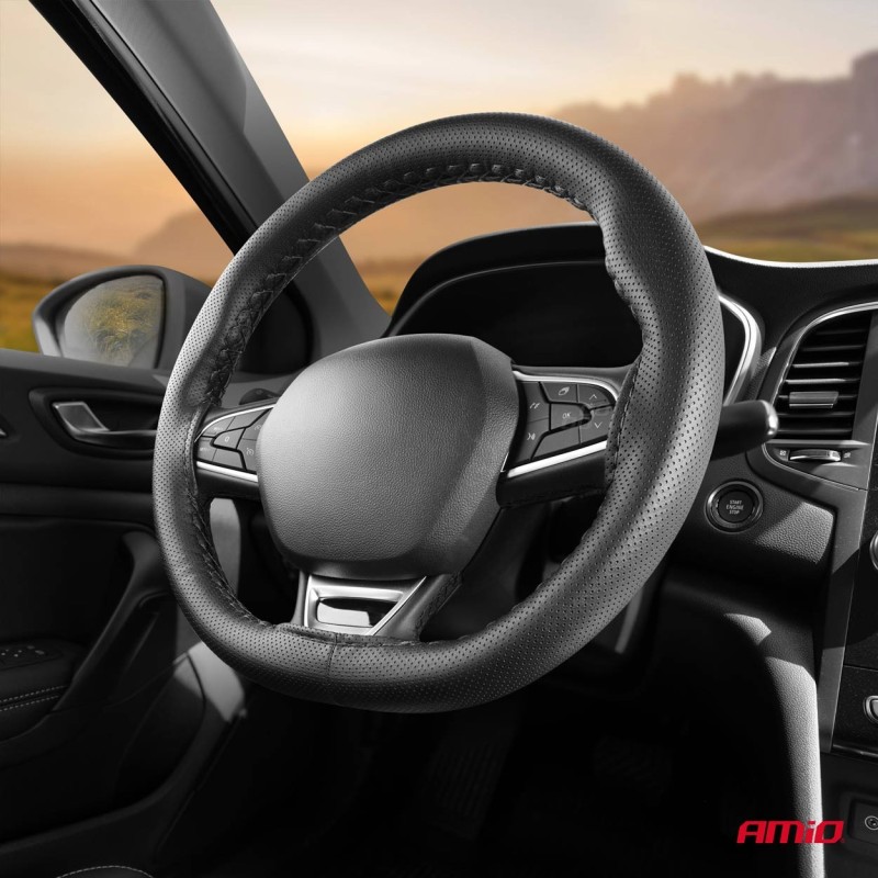 Funda volante cosida de cuero perforado color negro 38-39 mm