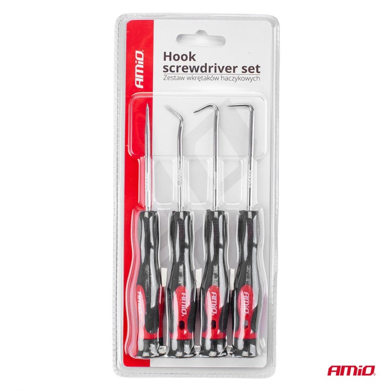 Juego de ganchos con mango. Los ganchos tienen cuchillas endurecidas y cromadas. El mango es de material antideslizante de alta calidad. El juego está fabricado con materiales de alta calidad.