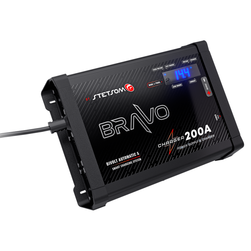 La gama de fuentes de alimentación BRAVO CHARGER ofrece una alta eficiencia energética para cargar baterías y alimentar equipos de automoción. Su sistema de carga inteligente evita el desgaste prematuro de las baterías, aumentando su vida útil y alimentando los equipos de forma continua, evitando que las baterías se descarguen durante su uso.