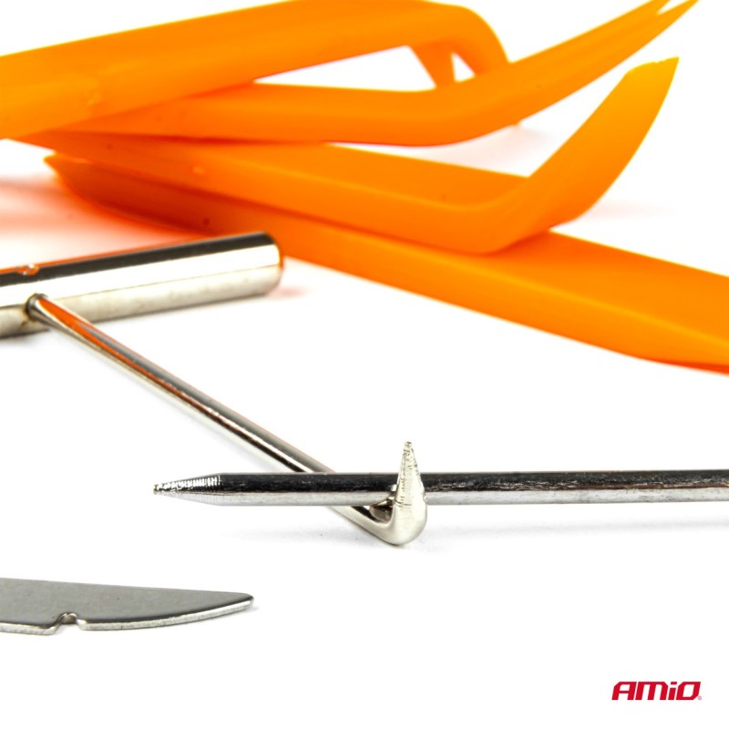 El juego ofrecido consta de 12 abridores diferentes, que utilizará al desmontar tapicería, carrocería, radios, navegación, juntas, tapas de puertas o cockpit en su coche.