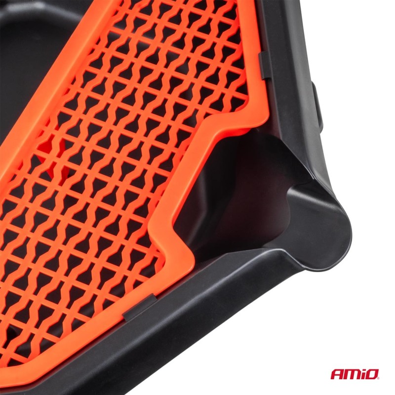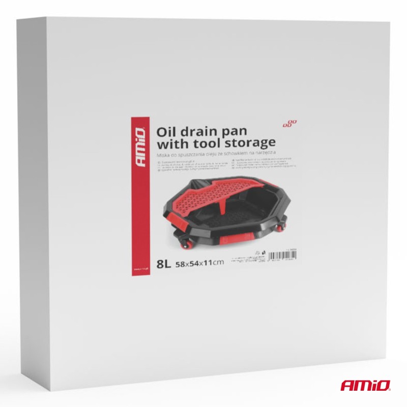 El cárter de aceite profesional sobre ruedas es la solución ideal para talleres, talleres de servicio de automóviles y bricoladores. Facilita la eliminación rápida y limpia del aceite usado y otros líquidos de servicio, y el compartimento integrado para guardar herramientas mantiene el orden mientras usted trabaja. Gracias a su diseño móvil con ruedas, el recipiente es fácil de maniobrar y funcionará bien en cualquier entorno de taller.