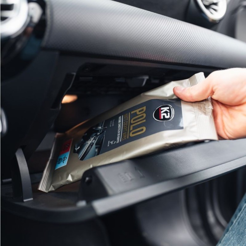 Las toallitas húmedas K2 POLO MATT WIPES están diseñadas para la limpieza y el mantenimiento del salpicadero y todo tipo de piezas de plástico.