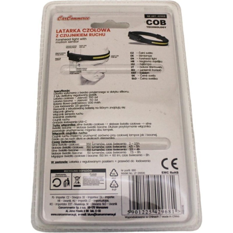 Linterna frontal: 350 lm de brillo .