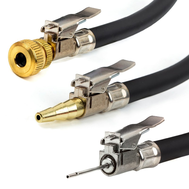 Juego de tres puntas para inflar balones, colchones, ruedas, juguetes y otros productos.