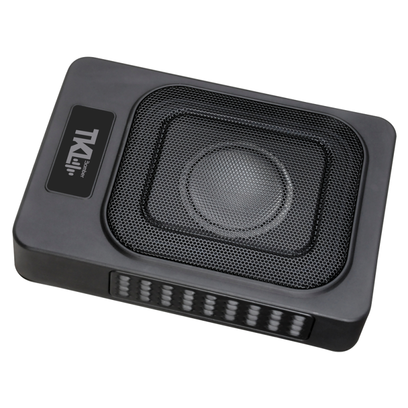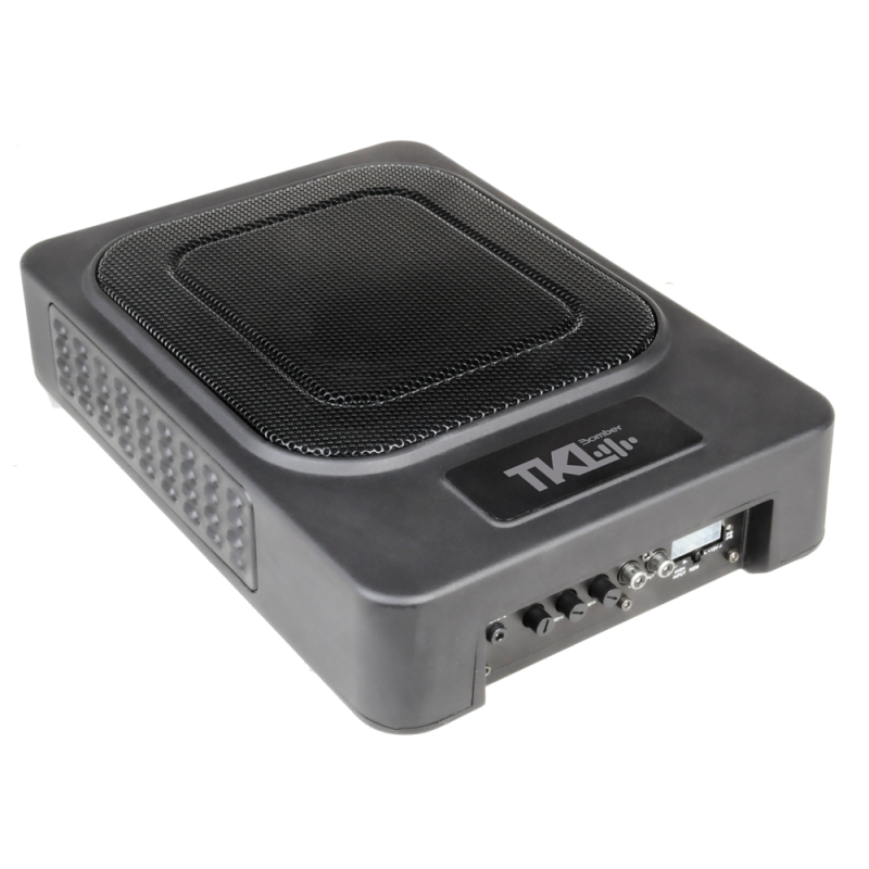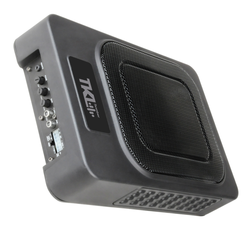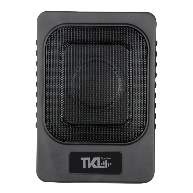 El TKL Bomber Slim Case está fabricado en aluminio inyectado de alta resistencia y es el más fino del mercado – tan solo 24x33x7 cm. Se puede instalar fácilmente debajo de los asientos de la mayoría de los vehículos con los soportes de montaje que vienen con el producto, así como los arneses de cableado para la instalación y el control remoto del volumen del amplificador. La señal de entrada puede ser de alta impedancia (RCA) o de baja impedancia (cables de salida de radio).