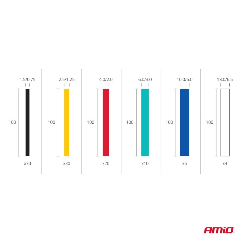 El juego incluye los siguientes tubos termorretráctiles de 100 mm de longitud: